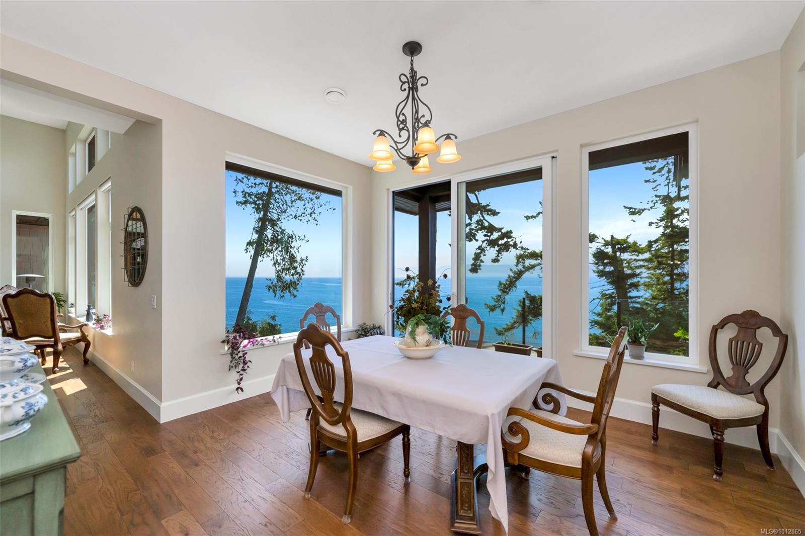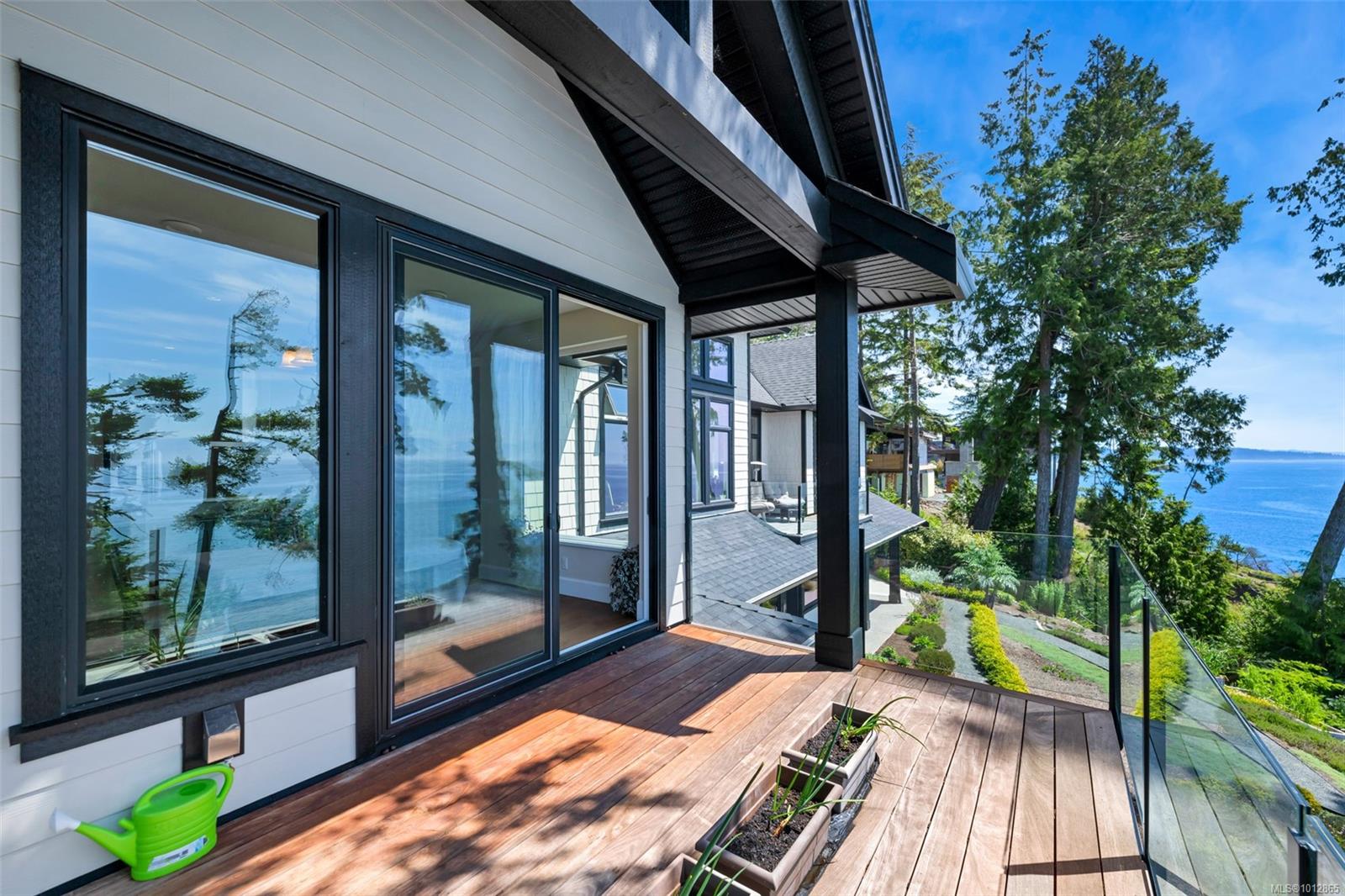 -Welcome to 2476 Lighthouse Point Rd- Situated along the coast of Sheringham Pt, this custom built, OCEANFRONT, executive home offers stunning panoramic ocean views that can be enjoyed from EVERY room, or your water's edge terrace, and 1 acre of privacy and lush greenery, this is truly a rare offering. With no step main level living and over 4000sqft of living space, this 5 bed, 5 bath home provides a mix of elegance and comfort. With heated tile floors, 17-20' ceilings, extensive soundproofing, 5 zone heat pump, Luxury Rumford style wood burning fireplace, a copper soaker tub and decks off the primary bedroom and dining room. The lower level has 3 large Master Suites that are purpose built for rental accommodations with complete noise separation sharing a common area with full kitchen. The custom details are too many to list, but include 2 50amp EV chargers, 8' solid core doors, custom forged iron banister, 8' Accoya front door, mortised acoustic door seals, solid wood cabinetry, quartz and granite throughout, Koi Fish inlay medallion, 2 hot water tanks, generator, irrigation system, and much much more. See the Orcas, seals, otters, and dolphins from your front yard. Explore the Lighthouse, French Beach, Juan De Fuca Trail, and many adventures for years to come.